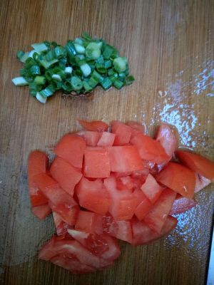 把西红柿切成丁,葱切碎