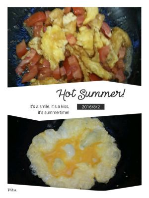锅里倒入色拉油烧热把搅拌好的鸡蛋倒入锅里煎成两面焦黄,加入西红柿一起炒将西红柿的水汁炒出来加水大火煮
