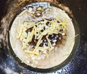 锅内擦干,倒入适量油,六成热时放入姜、蒜爆香。