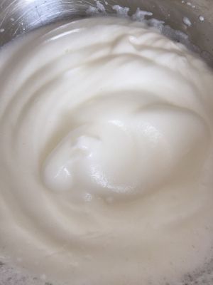 打发成型但无法拉出形状如上图,加入最后的1/3糖