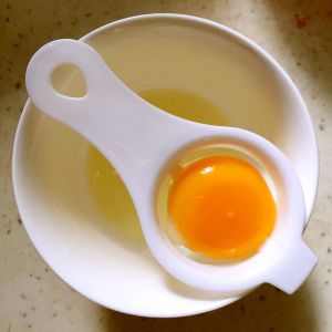 蒸牛奶时将鸡蛋黄和蛋白分离,要蛋白。我一直提倡光盘行动,所以蛋黄不要丢掉,可以炒着吃或将蛋黄打散后蒸熟吃。