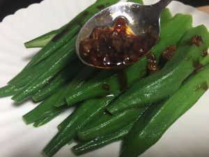 把放凉的蒜汁淋在秋葵上就好啦。