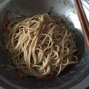 我的汁我忘记拍了,哈哈,之所以叫随意拌面关键就在于随意,喜欢甜就放糖喜欢酸就加醋。我放了蒜末,酱油,盐,糖,芝麻酱,辣酱油。总之边兑边尝,直到满意为止。