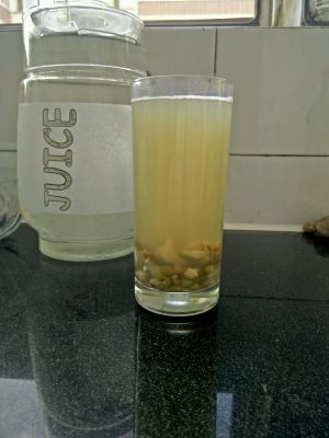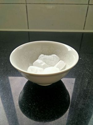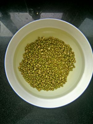 将绿豆,百合和适量冰糖、清水放入锅中。水沸腾后,改中小火。水由透明的清绿色,变得浑浊,绿豆开花后,就可以关火。