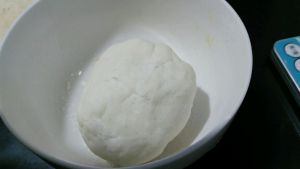 油酥面团里的所有材料揉成一团,猪油揉的比较白