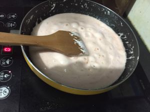 第四步:棉花糖放锅中融化,要不停的翻炒,小心糊了。