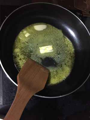 第三步:黄油放入锅中融化。