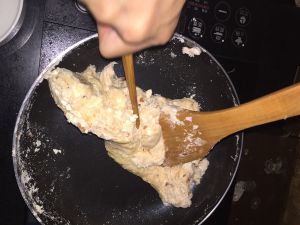 第六步:翻炒均匀,问着有浓浓的奶香味,就可以出锅,放入模具里了。