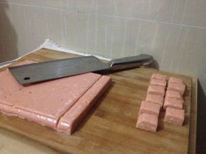 第八步:待凉一些,到出来,用刀具切成一条一条,待包糖纸.