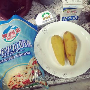 把红薯洗净去皮,用蒸锅把它蒸熟,用勺子压成泥,倒入些许牛奶,切一小块黄油,用勺子搅拌然后压平,上面铺一层奶酪。