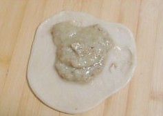 最后把面剂子擀开或用手拉伸成饼皮,包入馅料。馅料也最好事先分成16份。