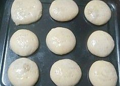 表面刷蛋液,送入预热190度的烤箱内,中层上下火25-30分钟,烤制表面金黄即可。也可两盘同时烤,中间上下两盘需调换位置,时间也要相应加长。