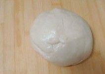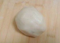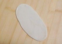 用擀面棍擀成椭圆形,注意沿着一个轴向从中间开始擀。