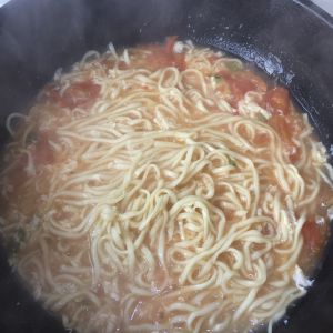 水开后下面,放适量盐,面快好时,倒入打好的鸡蛋液,略搅一下,就出锅啦