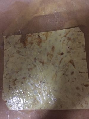 搅拌均匀后,盛到油纸上,再在上面铺上油纸,并擀平。