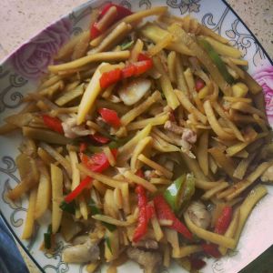 在放入土豆丝