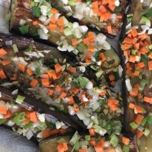 待2-3分钟后撒盐调味后再撒上胡萝卜泡菜丁