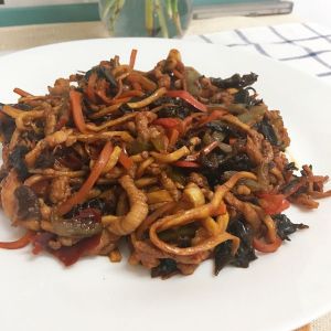 猪里脊切条,用淀粉, 胡椒粉,蛋清,料酒腌制