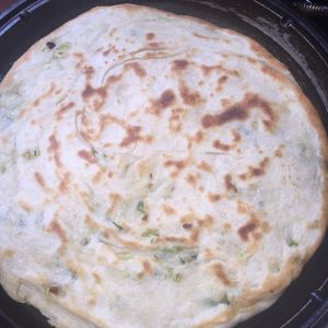 一面好后翻面,用平底锅的话小火就好,很快就出锅了,外脆里嫩的,不像死面饼剩了就咬不动,这个凉了还是软的