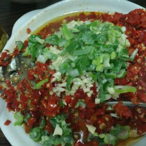 备好蒜末,能吃辣的来点小米辣,准备点自制的剁椒或者买的也行(一定选择好,要不会有回味,影响口感)
