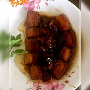 猪肉煮熟,切方块备用。感兴趣的可以数数真的有6层哦。现在市面的猪肉打瘦肉精都没有肥肉了,好看不好吃。