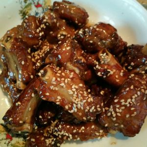 4.捞出排骨放一边待用 锅里油倒出 放半碗开水 四汤匙白糖 排骨放入 熬到有点粘稠的时候 倒两汤匙醋 一定是黑醋 老陈醋