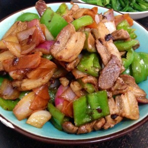 抄过水的五花肉切片,洒上少许花椒和姜片