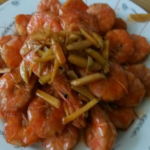炒出香味加入刚盛起的虾再次翻炒