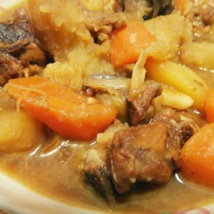 鸡腿剁成块,过水煮后捞出。土豆、胡萝卜切块。葱切块,姜切片。