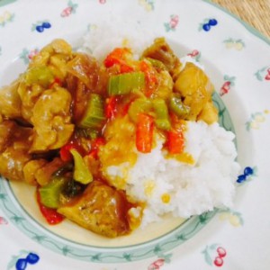 过三分钟后。掀开锅盖,再一次倒入第二种咖喱(一勺) 翻炒(大火) 放入一勺盐 翻炒出锅!
