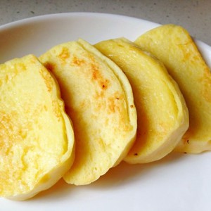 锅中放少许油,油热后放入沾好蛋液的馒头片,煎至表面金黄即可。
