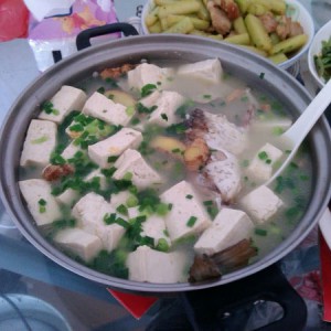 起锅前放一点盐巴,可以不放味精!再把葱花洒上去就可以了,一锅鲜甜美味的鲫鱼豆腐汤就好了!