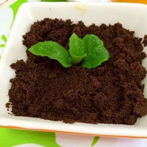蒸好后的双皮奶可以静置至温热或冷却,或冰箱冷藏。奥利奥饼干除去中间奶油,放入粉碎机中碎成粉末。最后在双皮奶表面撒上奥利奥饼干粉,插上自家种的薄荷,大功告成。