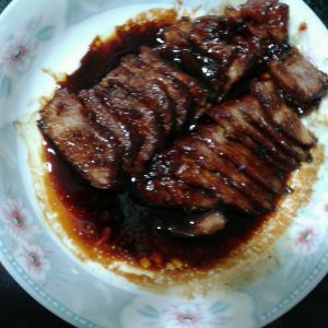 香喷喷的蜜汁叉烧肉出炉了,切片浇汁便可上桌享用了。