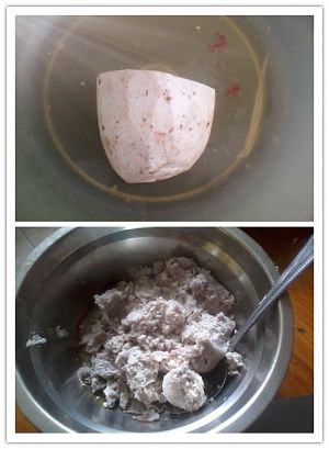 把芋头蒸熟后捣成泥、加入糖、盐、再弄点水使芋头泥粘合