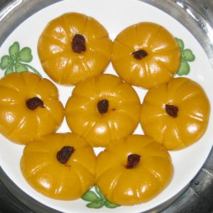 揉成小面团,用刀子压出瓜瓣,顶上放个葡萄干。上屉蒸蒸熟即可