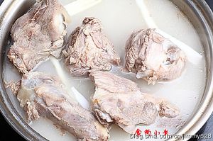 大棒骨在卖骨头的地方让卖家劈好,凉水下锅,小火煮出血沫,捞出用热水冲净