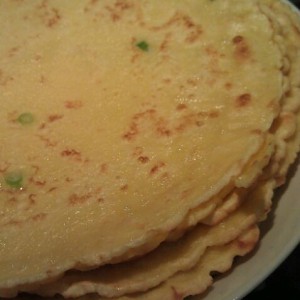 平底锅,小火,少量油,倒入面糊,可以把锅拿起来稍微倾斜一圈,面糊就均匀平整了!
