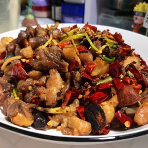 很多干辣椒剪成段,姜切丝,葱切段,花椒一小把,八角一粒