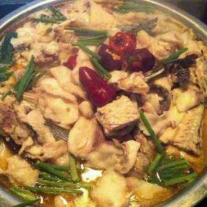 把准备的食材放在盆里备用,最后把煮好的鱼,全部倒入备好的菜中……