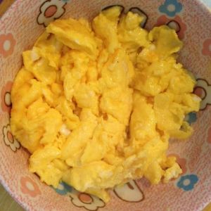 待成型的鸡蛋用铲子铲粹盛出来备用。