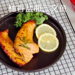 烤好的三文鱼,可以挤上一点新鲜柠檬汁