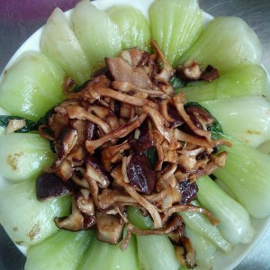 3 香菇水淖后,少许油炒香菇加盐,糖和味达美