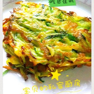 南瓜隔夜刨丝用盐腌制,在南瓜丝中打入一只鸡蛋,3勺面粉,加入调味料拌匀。