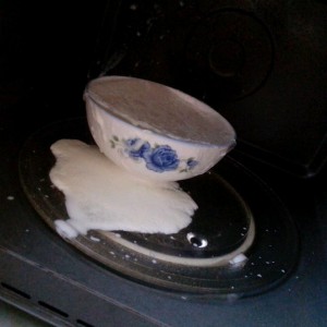放凉后有层奶皮,揭起,将奶倒入鸡蛋清,加糖搅匀