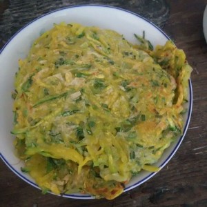 南瓜最好用嫩一点的南瓜,把它搽成细丝,加少许盐腌出水