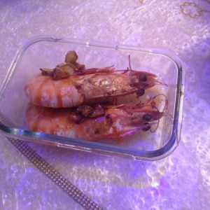 下一点油烧热放姜片略微鞭炒一下香味,放虾两面煎一下。因为海鲜本身就有咸味,所以只放一点点盐就可以了。再煎2分钟。