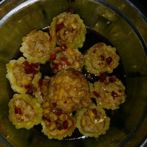 剁肉,加入作料,盐,生抽,酱油,耗油,大蒜,姜。搅拌一起腌制10分钟。