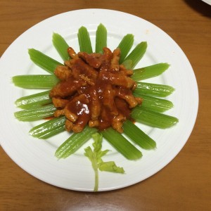 迅速的倒入炸好的肉丝,搅拌一下,使肉丝都均匀的粘上酱汁。