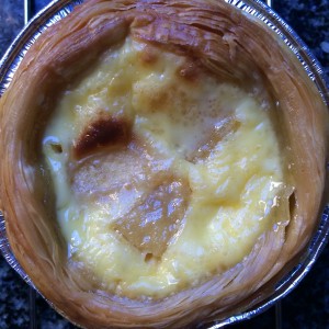 制作塔水:除了蛋黄外,加入所以材料加热搅拌到吉士粉化掉 (不用太烫)晾凉后加入蛋黄搅拌均匀。倒入8分满就好 中间空闲可以预热烤箱到加热管红色变暗就可以入箱烤。